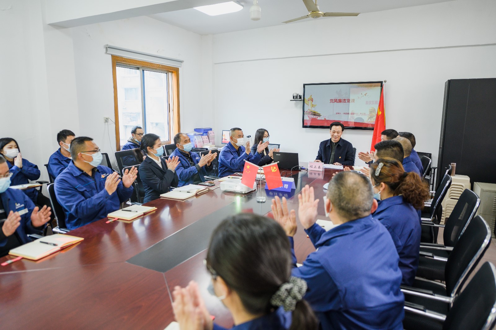 植樹活動(dòng)結(jié)束后,在中江水司三樓會(huì)議室,市委政法委副書記、市法學(xué)會(huì)常務(wù)副會(huì)長程正春同志以“黨徽黨旗的故事”和黨風(fēng)廉政為題,為中江水司全體黨員上了兩堂精彩的專題黨課。在“黨徽黨旗的故事”黨課中,程書記以PPT形式,生動(dòng)、細(xì)致、深入淺出地帶領(lǐng)大家回顧了黨徽黨旗的發(fā)展演變過程,學(xué)習(xí)了黨章等關(guān)于黨徽黨旗的規(guī)定,了解了黨徽黨旗的制作和使用等知識。在黨風(fēng)廉政建設(shè)主題黨課上,程書記對十九屆中央紀(jì)委五次全會(huì)、四川省紀(jì)委十一屆五次全會(huì)以及德陽市紀(jì)委八屆六次全會(huì)精神進(jìn)行了宣講,著重就三次會(huì)議上對黨風(fēng)廉政工作的部署進(jìn)行了講解。他強(qiáng)調(diào):黨風(fēng)廉政建設(shè)永遠(yuǎn)在路上,支部要切實(shí)履行好黨風(fēng)廉政建設(shè)的主體責(zé)任,加強(qiáng)清廉企業(yè)建設(shè),切實(shí)強(qiáng)化黨建政治引領(lǐng),嚴(yán)肅黨內(nèi)政治生活,堅(jiān)持兩手抓、兩手硬,全力推動(dòng)國有資產(chǎn)保值增值,黨員干部要樹牢以人民為中心的服務(wù)思想,進(jìn)一步優(yōu)化服務(wù)措施,堅(jiān)持為人民辦實(shí)事。