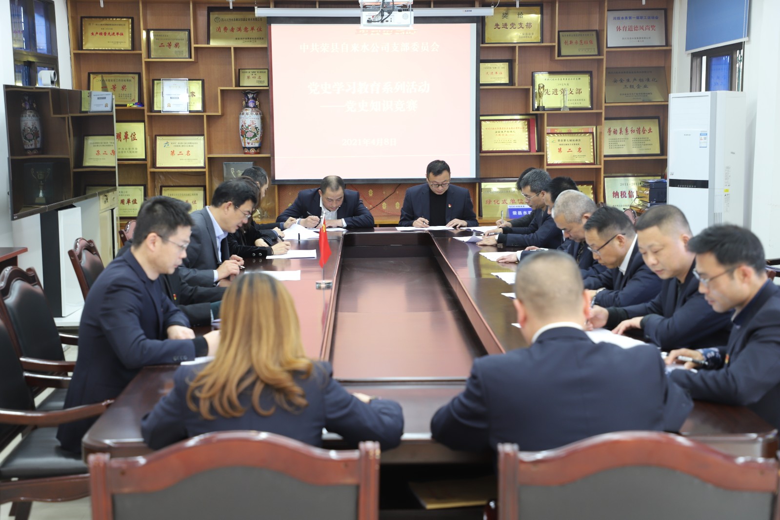在參觀愛國主義教育基地、召開黨史教育專題學(xué)習(xí)會后,為進一步深化黨史學(xué)習(xí)教育成果,傳承紅色基因,發(fā)揚優(yōu)良傳統(tǒng),堅定黨員的理想信念,4月8日上午,榮縣水司黨支部開展了黨史知識競賽,會議由黨支部書記、執(zhí)行董事、總經(jīng)理龔慶主持,黨員、入黨積極分子及部分職工代表參與了此次競賽。