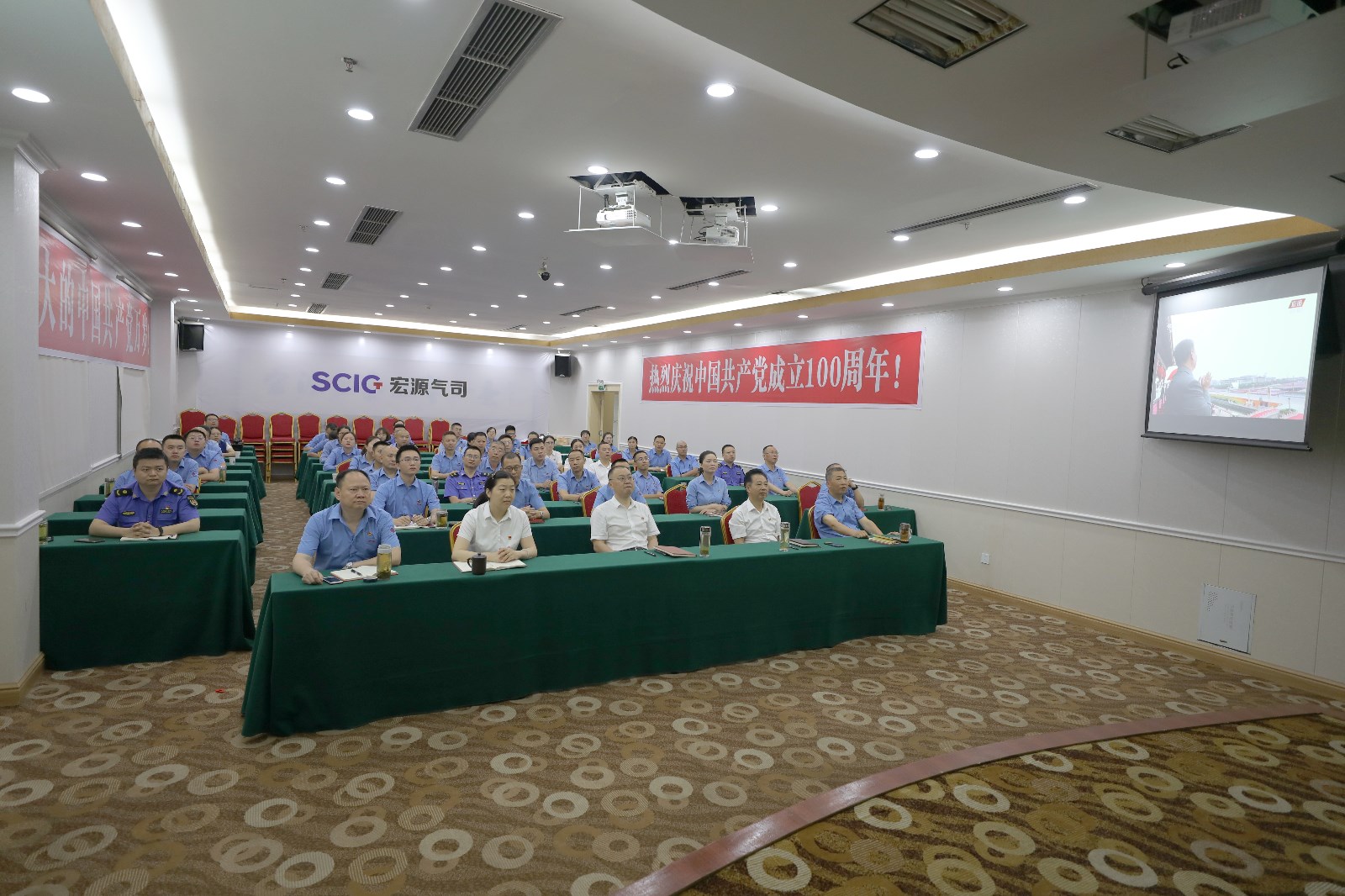 2021年7月1日,慶祝中國(guó)共產(chǎn)黨成立100周年大會(huì)在北京天安門(mén)廣場(chǎng)隆重舉行。中共中央總書(shū)記、國(guó)家主席、中央軍委主席習(xí)近平發(fā)表重要講話。宏源公司黨員干部及部分員工代表共計(jì)54人在宏源大酒店11樓會(huì)議室集中收聽(tīng)收看了大會(huì)實(shí)況直播,學(xué)習(xí)領(lǐng)會(huì)習(xí)近平總書(shū)記的重要講話精神。