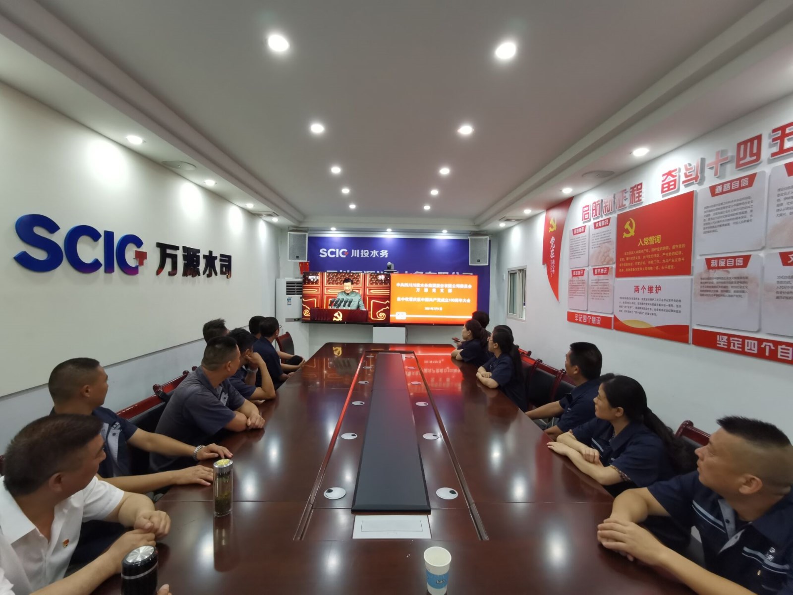 7月1日上午8時,慶祝中國共產黨成立100周年大會在北京天安門廣場隆重舉行。中共中央總書記、國家主席、中央軍委主席習近平發(fā)表重要講話。中共四川川投水務集團股份有限公司委員會萬源黨支部組織黨員干部共計27人,齊聚黨員活動室,收聽收看了大會直播盛況。