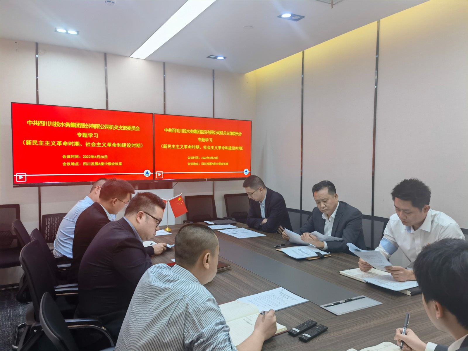 2022年4月20日,為進(jìn)一步深入推進(jìn)開展黨史學(xué)習(xí)教育工作,繼續(xù)教育引導(dǎo)廣大黨員干部切實做到學(xué)懂弄通、學(xué)有所為,川投水務(wù)集團(tuán)機(jī)關(guān)支部認(rèn)真組織召開了“新民主主義革命時期”“社會主義革命建設(shè)時期”專題學(xué)習(xí)會,專題學(xué)習(xí)會由機(jī)關(guān)黨支部書記嚴(yán)斯亮主持。