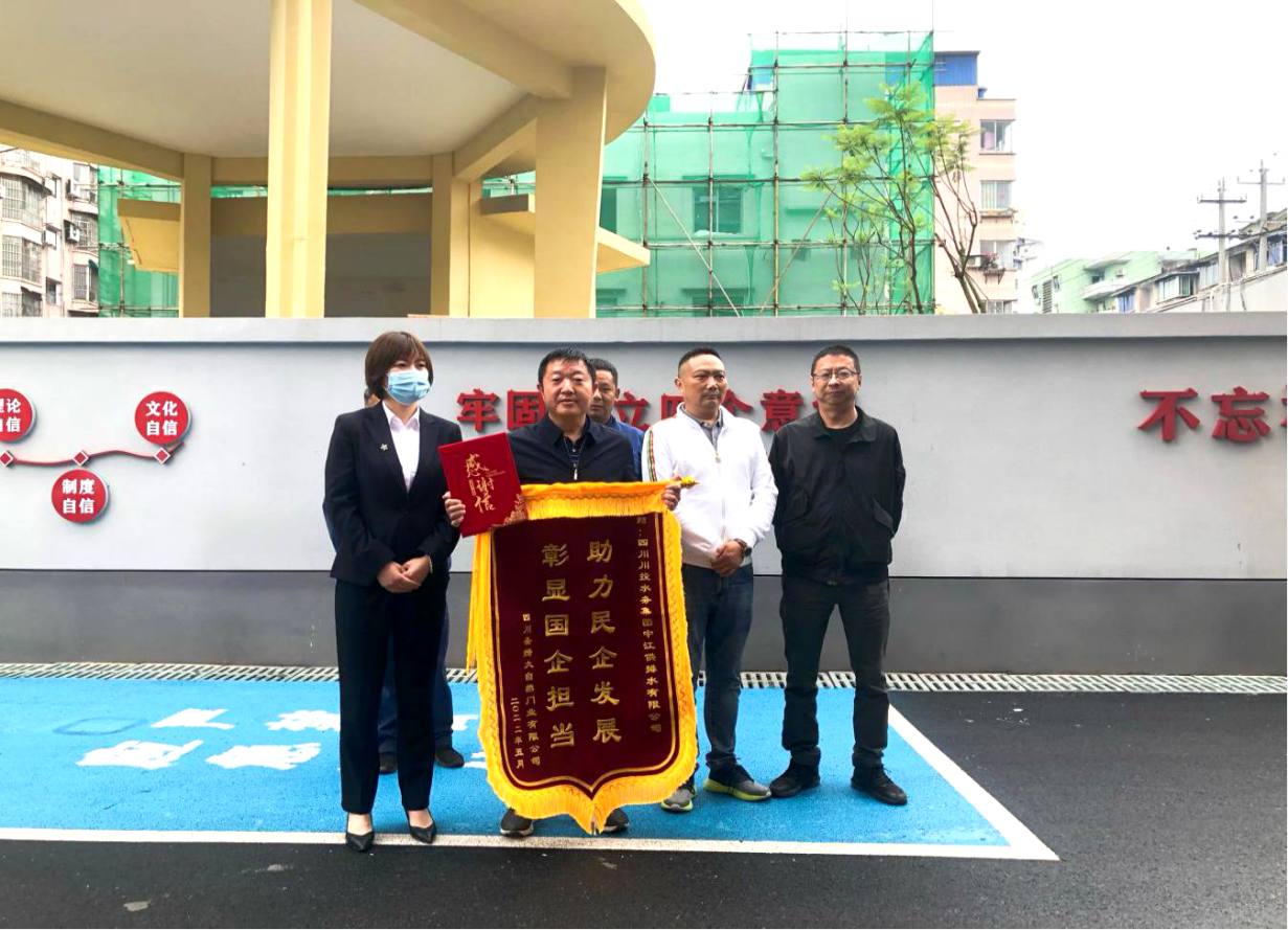5月18日下午,四川圣締大自然門業(yè)有限公司來到中江水司,將一封感謝信和一面印有“助力民企發(fā)展 彰顯國企擔(dān)當(dāng)”的錦旗送到黨支部書記、董事長、總經(jīng)理朱禹手中,以表達(dá)對中江水司解決其用水困難的高度贊揚和誠摯謝意。