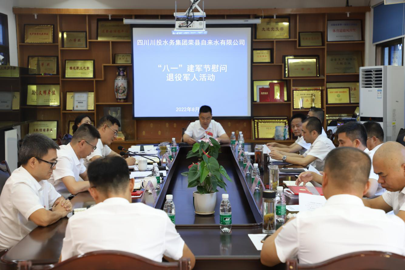 8月1日下午,在中國人民解放軍建軍95周年之際,榮縣水司組織召開慶“八一”座談會(huì),并對公司退役軍人進(jìn)行慰問,進(jìn)一步弘揚(yáng)擁軍愛軍的優(yōu)良傳統(tǒng)。公司全體退役軍人及部分黨員代表參加了會(huì)議,支部書記、執(zhí)行董事、總經(jīng)理龔慶主持會(huì)議。