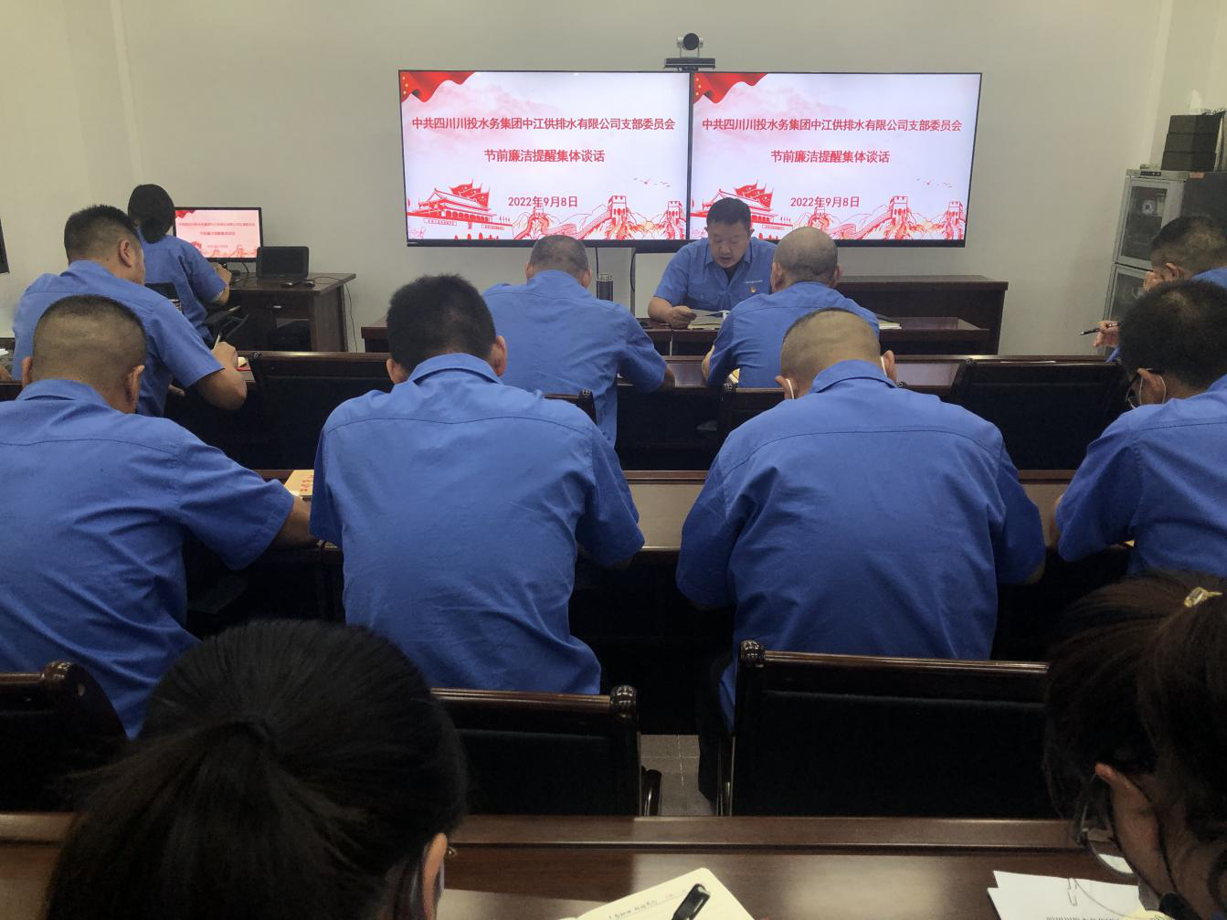 為深入推進黨風廉政建設(shè),加強廉政風險防控,增強黨員干部廉潔自律意識,積極營造風清氣正的良好環(huán)境。9月8日下午,中江水司黨支部開展廉潔教育主題黨日活動,支部全體黨員、入黨積極分子、公司班組以上管理人員、廉潔關(guān)鍵崗位人員等四十余人參加了活動。