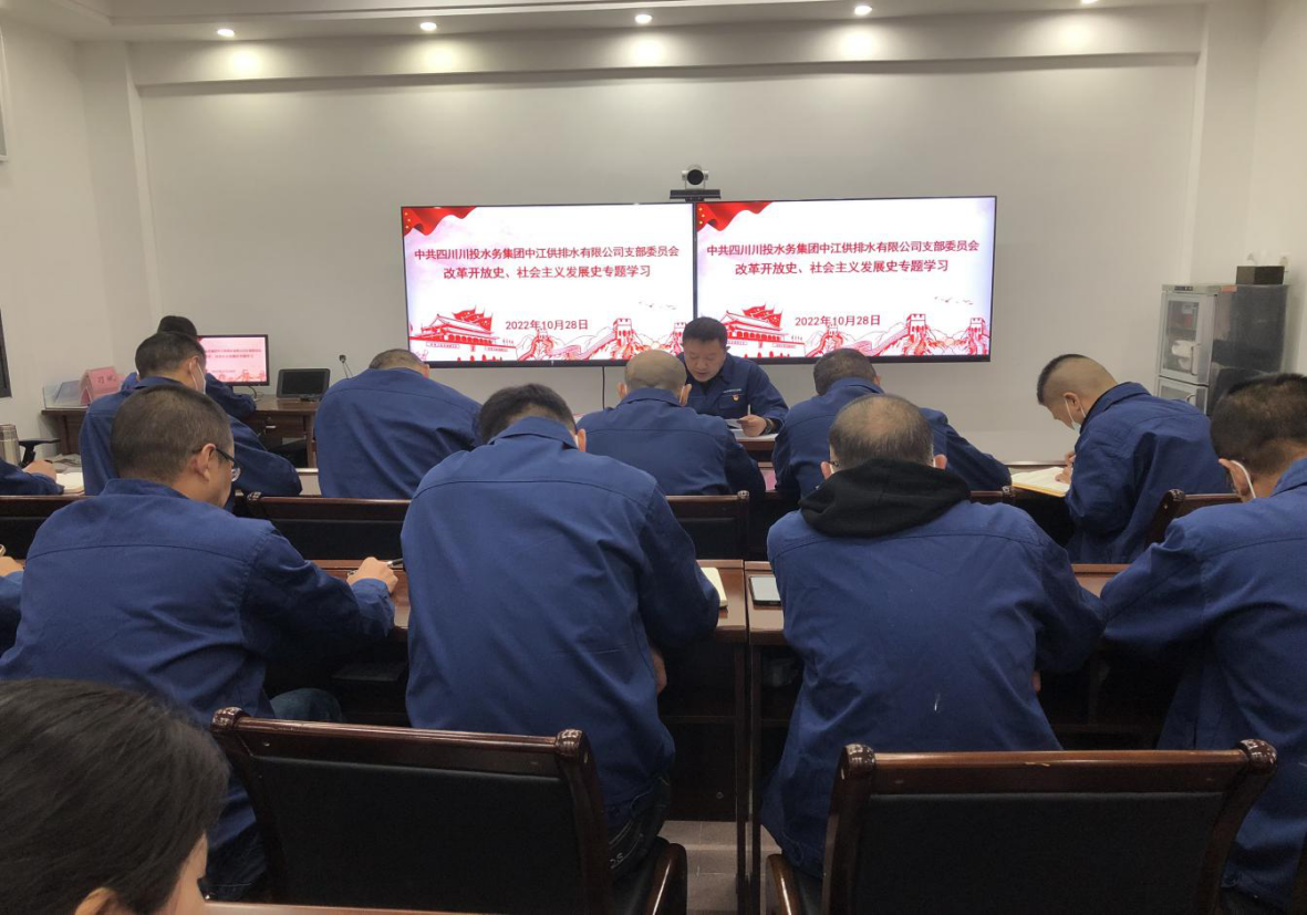 10月28日下午,中江水司黨支部組織召開黨員大會,專題學習“改革開放史、社會主義發(fā)展史”,會議由黨支部書記、董事長、總經理朱禹主持,支部黨員、入黨積極分子、公司班組以上管理人員共計31人參加了學習活動。