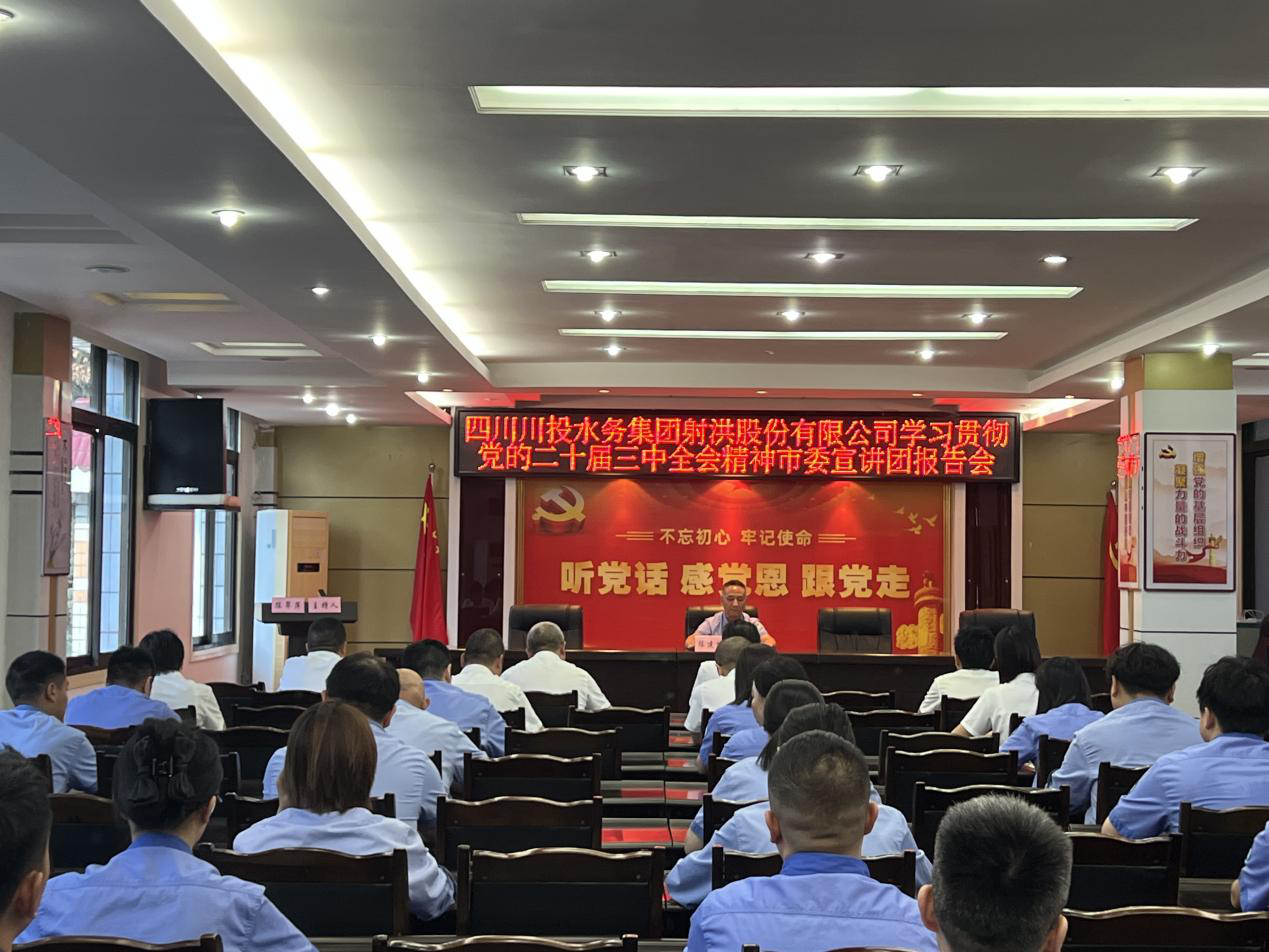 9月13日,川投水務(wù)射洪公司舉行學(xué)習(xí)貫徹黨的二十屆三中全會精神市委宣講團(tuán)報(bào)告會。遂寧市勞動模范、射洪市委宣講團(tuán)勞模工匠宣講分團(tuán)成員、公司制水調(diào)度班班長陳建峰同志作宣講報(bào)告,射洪市總工會代表、公司領(lǐng)導(dǎo)班子、全體黨員、職工代表共計(jì)50余人參加了會議。