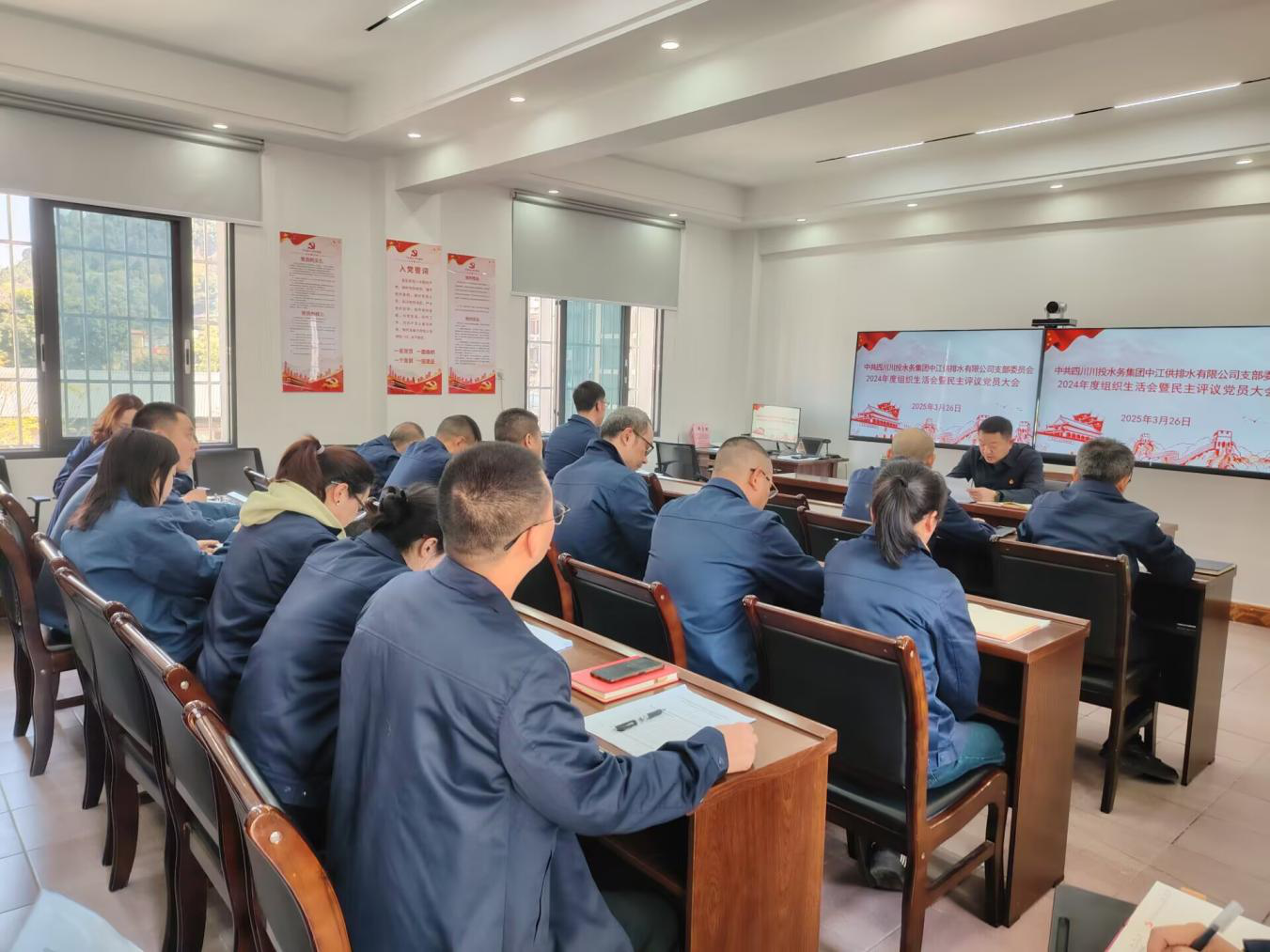 2025年3月26日,中江公司組織召開2024年度組織生活會(huì)暨民主評(píng)議黨員大會(huì),會(huì)議由黨支部書記朱禹主持,支部22名黨員參加會(huì)議,公司供水部、污水部2名員工列席會(huì)議。