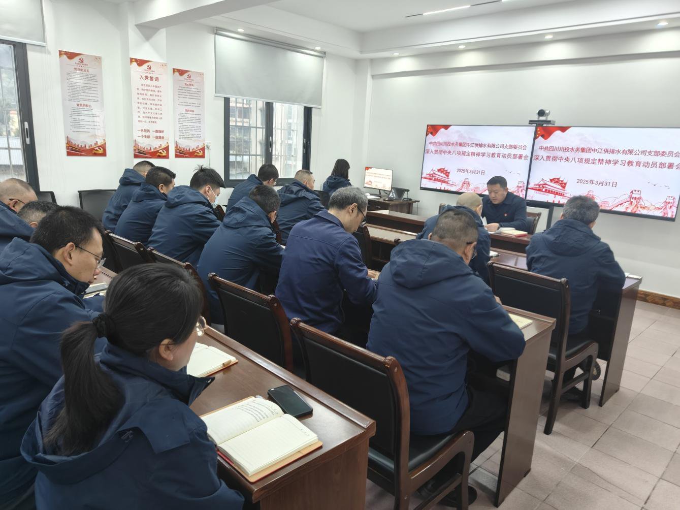2025年3月31日,中江公司組織召開深入貫徹中央八項規(guī)定精神學習教育動員部署會議,深入學習習近平總書記關于加強黨的作風建設重要論述,傳達相關文件精神,安排部署公司學習教育工作。公司黨支部書記朱禹主持會議并作動員講話,公司中層以上管理人員、支部黨員、入黨積極分子共計24人參加了會議。