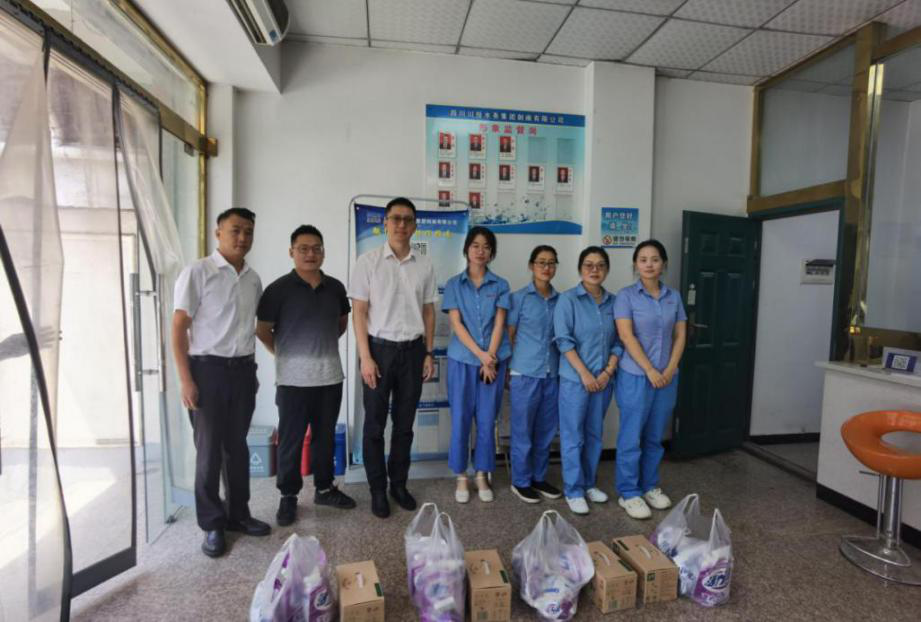 隨著夏季高溫的持續(xù),劍閣新老縣城居民用水量急劇增加。劍閣水司的員工們頂著烈日酷暑,堅(jiān)守崗位,全力以赴保障新老縣城居民的生產(chǎn)生活用水?;顒?dòng)中,嚴(yán)總代表川投水務(wù)集團(tuán)黨委,為一線(xiàn)員工送去了精心準(zhǔn)備的防暑降溫物品,親切詢(xún)問(wèn)了大家的工作和生活狀況,并叮囑大家在高溫作業(yè)時(shí)要注意防暑降溫,確保身體健康。