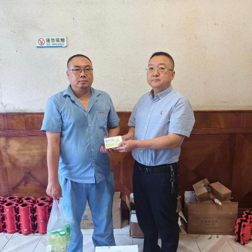 活動當(dāng)天,劍閣公司黨支部委員、工會主席、副總經(jīng)理韓名泉率工會慰問小組成員先后前往制水廠、在建工地、抄表一線等多個(gè)工作現(xiàn)場。每到一處,與員工們親切交流,詳細(xì)詢問他們的工作情況和身體狀況,將一份份飽含關(guān)懷的荷香正氣液、金銀花露等防暑降溫物品送到員工手中。