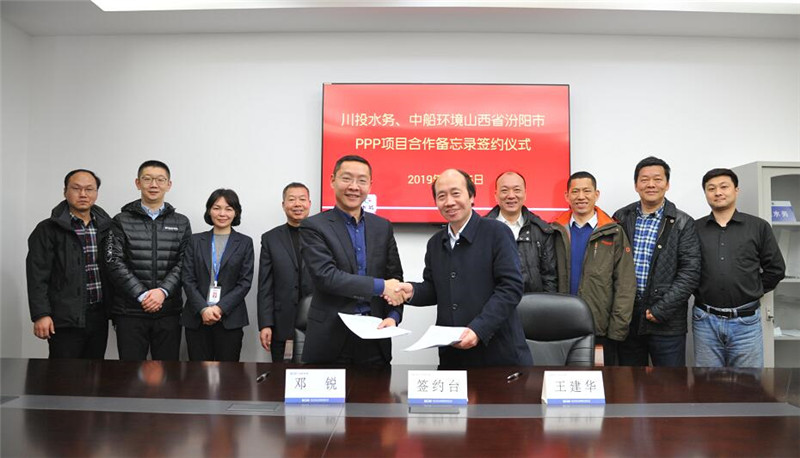 雙方隨后舉行了“汾陽市汾河流域生態(tài)修復(fù)與保護(hù)工程PPP項(xiàng)目汾陽市市政基礎(chǔ)設(shè)施建設(shè)工程PPP項(xiàng)目”合作備忘錄的簽約儀式。中船環(huán)境財(cái)務(wù)部長李運(yùn)良、市場部副部長吳冠群、財(cái)務(wù)部主管吳雪峰、質(zhì)量部主管李漢平,川投水務(wù)集團(tuán)總會計(jì)師祝瑗、董事會秘書嚴(yán)斯亮、川投船重總經(jīng)理馬銘偉等參加了會談。