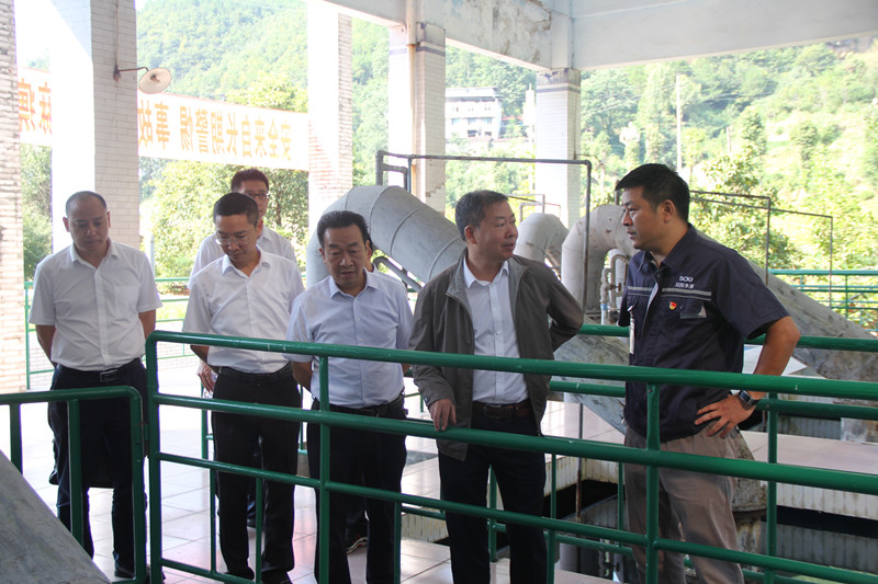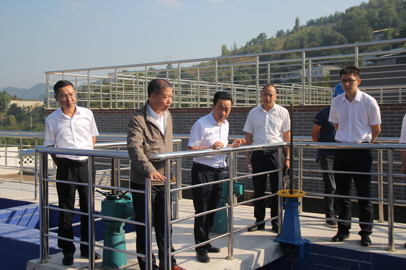 9月2日,川投水務集團黨委書記、董事長梁有國,黨委副書記、總經理鄧銳,黨委委員、紀委書記但必良,董事會秘書、萬源水司執(zhí)行董事嚴斯亮,董事會辦公室艾興宇一行五人來到萬源水司調研馱山水廠建設和安全生產情況。