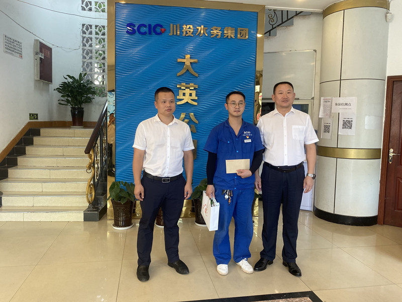 8月10日下午,大英縣委副書記、縣長胡銘超來到川投水務(wù)大英水司,對“開關(guān)俠”魏巍勇于奉獻、保障供水、弘揚正能量的行為給予充分肯定,并送上慰問和祝福。