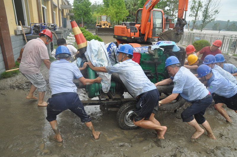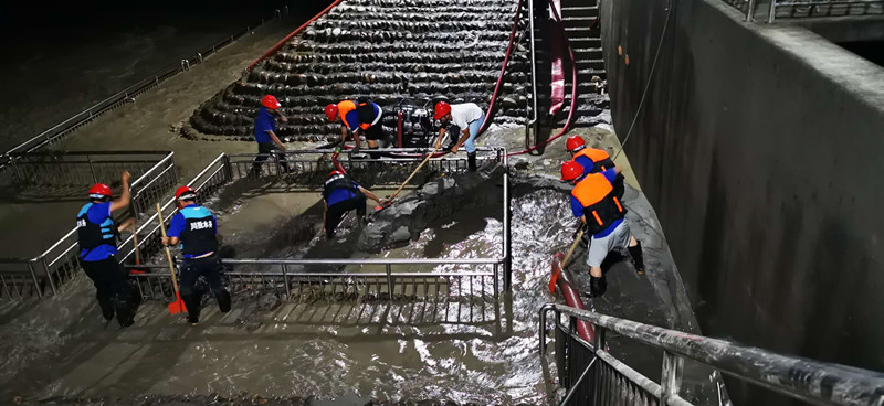 會(huì)上,黃董事長通報(bào)了所屬中江水司、射洪水司及榮縣氣司等公司受災(zāi)情況及抗洪搶險(xiǎn)工作組織開展情況,著重對(duì)受災(zāi)較為嚴(yán)重的射洪水司龍灘村取水口搶險(xiǎn)工作進(jìn)行了通報(bào)。受“8.16”百年一遇的涪江洪峰過境影響(此次洪峰流量最高達(dá)22600立方米/秒,比2018年“7.11”洪災(zāi)時(shí)最高流量高出1200立方米/秒),射洪水司龍灘村取水口廠區(qū)被過境洪峰及其攜帶的大量泥沙所淹沒,被迫停止取水。為盡快恢復(fù)正常供水,川投水務(wù)黨委書記、董事長黃勁,黨委副書記、總經(jīng)理鄧銳駐守射洪水司現(xiàn)場指揮,帶領(lǐng)由射洪水司精干力量組成的應(yīng)急搶險(xiǎn)隊(duì)伍歷經(jīng)22小時(shí)連續(xù)不間斷奮戰(zhàn),成功恢復(fù)供水,取得抗洪搶險(xiǎn)的階段性勝利。