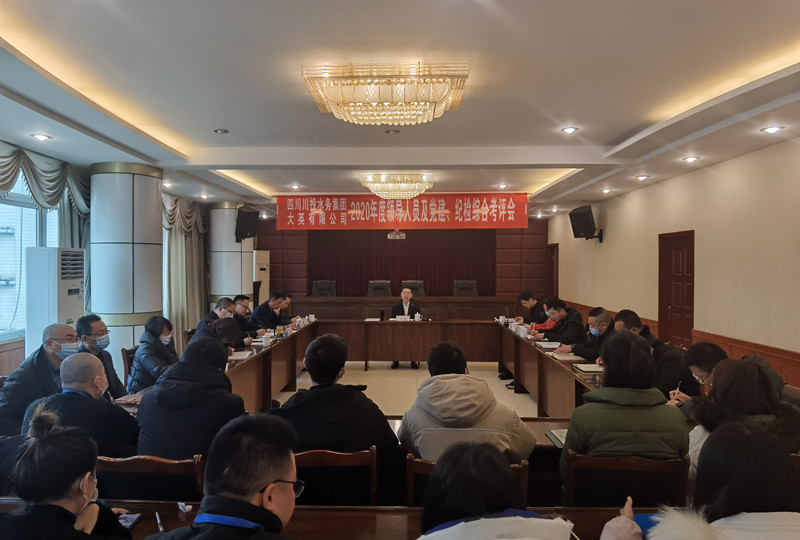 2021年1月29日,川投水務集團黨委副書記、總經(jīng)理鄧銳、人力資源部部長候獻國、安全環(huán)保部部長馬玉斌、黨群工作部劉言一行對大英水司2020年生產(chǎn)經(jīng)營、團隊建設、企業(yè)黨建、廉潔建設及安全環(huán)保等工作開展情況進行綜合考評。大英公司班子成員、中層管理人員、員工代表參加考評。