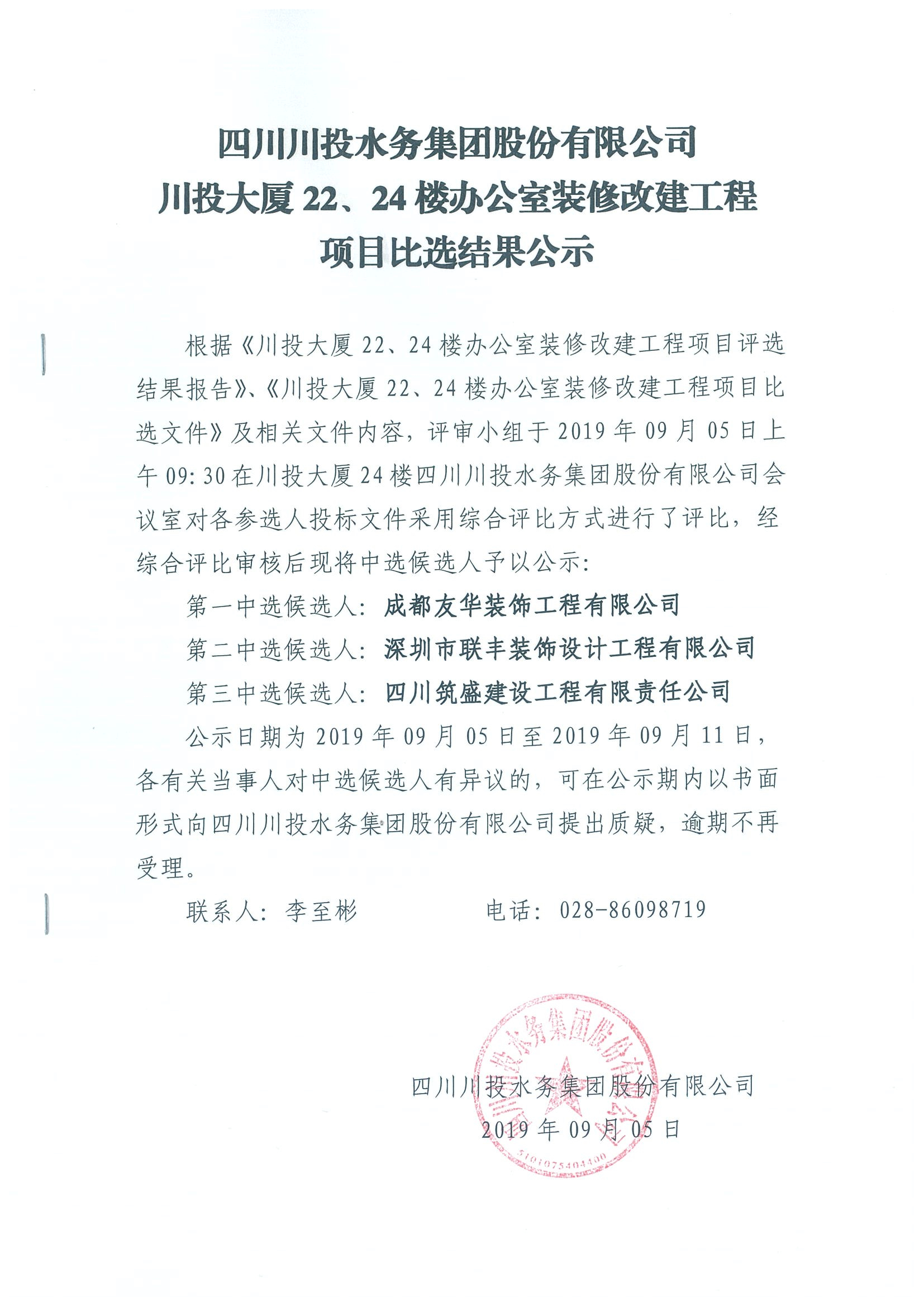 上一條:四川川投水務(wù)集團(tuán)股份有限公司川投大廈22、24樓辦公室弱電改建工程 項(xiàng)目競(jìng)爭(zhēng)性談判公告