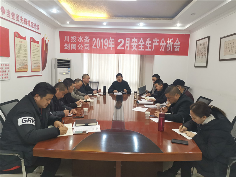 2月12日上午9時,劍閣水司召開2月份安全生產(chǎn)分析例會暨節(jié)后收心會,公司經(jīng)營班子成員和全體中層干部參加會議,會議由黨支部書記、執(zhí)行董事、總經(jīng)理、安委會主任何天政主持。