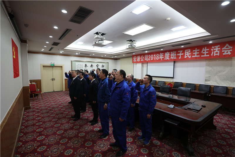 “我志愿加入中國共產黨,擁護黨的綱領,遵守黨的章程,履行黨員義務,執(zhí)行黨的決定,嚴守黨的紀律,保守黨的秘密,對黨忠誠,積極工作,為共產主義奮斗終身,隨時準備為黨和人民犧牲一切,永不叛黨?!泵嫦蝓r紅的黨旗,在宏源公司黨委書記、總經理李旭東的帶領下,與會人員高舉右手,緊握拳頭,重溫入黨誓詞,鏗鏘有力的誓言在會場內回蕩,彰顯著擲地有聲的承諾,詮釋著履職盡責的擔當。伴隨著嘹亮的宣誓聲,宏源公司2018年度班子民主生活會圓滿結束。
