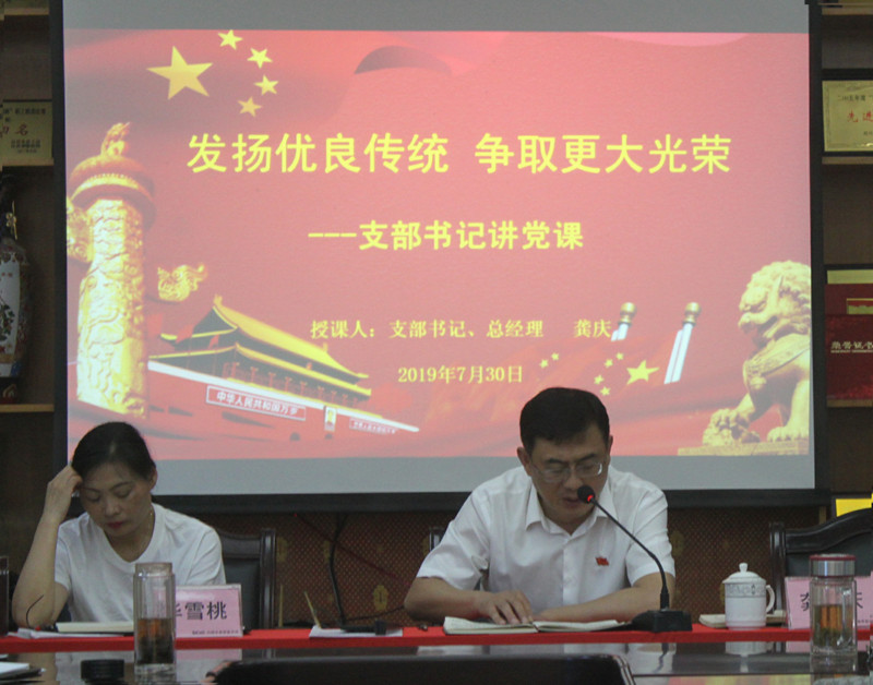 隨后,支部書記、總經理龔慶以“發(fā)揚優(yōu)良傳統(tǒng)、爭取更大光榮”為主題上了一堂精彩深刻的黨課。龔總帶領大家共同回顧了中國人民解放軍92年的光輝歷史。他講到,在不同的歷史時期,人民軍隊風雨兼程、步履鏗鏘,以堅實的臂膀支撐起了民族的脊梁,以艱辛的付出樹立起了光輝的形象。同時,龔總提出三點要求:一是要求公司全體退役軍人退伍不褪色,永葆軍人本色,在工作生活中繼續(xù)發(fā)揚人民解放軍的光榮傳統(tǒng)和優(yōu)良作風,發(fā)揮模范帶頭作用,爭取更大光榮;二是要求全體干部職工樹立正確“三觀”,謙虛謹慎、戒驕戒躁、一日三省,學習革命軍人吃苦耐勞、艱苦奮斗的寶貴品質,堅定崇高理想,盡心盡力干好本職工作;三是要充分認識到學習的重要性,牢記梁有國董事長提出的“三個意識”,常有責任意識、危機意識與競爭意識,要與時俱進順應時代,不斷學習提升素質,為公司高質量發(fā)展貢獻自己的力量。