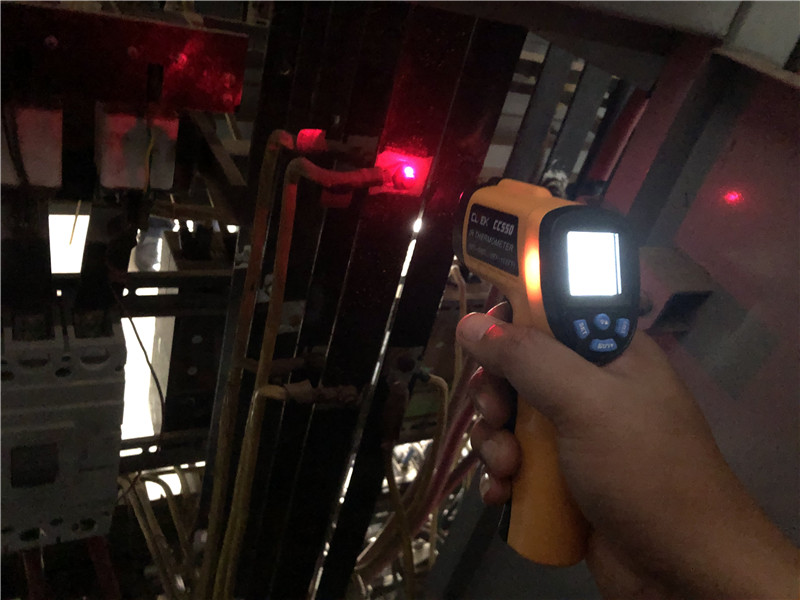 檢查組逐一對辦公樓、小區(qū)配電室和太吉水廠區(qū)域進行了用電專項檢查。在檢查中及時發(fā)現(xiàn)辦公樓6樓空開進出接線樁頭未用線鼻導致溫度過高;小區(qū)配電室空開出線端溫度過高達到107℃、進線母排與空開接線處溫度達到153℃。檢查組當即要求供電公司技術(shù)人員進行維修處理。