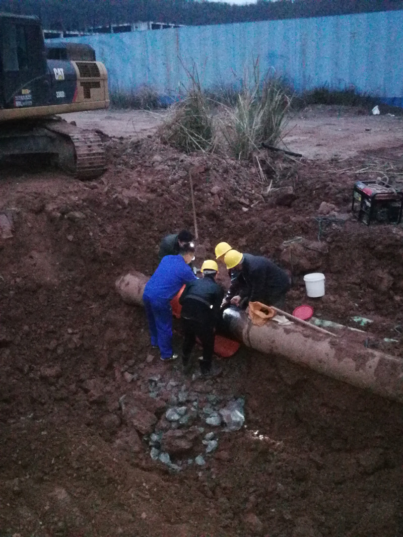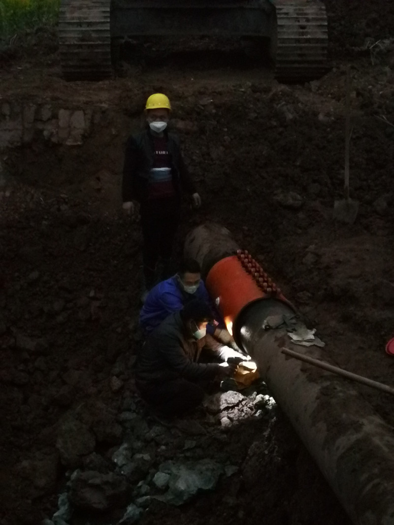 查清現(xiàn)場(chǎng)情況后,公司第一時(shí)間向分管副縣長(zhǎng)和相關(guān)部門作了匯報(bào)。為了在最短時(shí)間內(nèi)恢復(fù)供水,搶修人員現(xiàn)場(chǎng)商量最佳搶修方案,并立即關(guān)閉閥門、排水,作業(yè)面開挖,調(diào)度搶修器材。綜合部也第一時(shí)間發(fā)布臨時(shí)停水通知,讓停水區(qū)域居民了解實(shí)情,知曉搶修進(jìn)度。公司總經(jīng)理劉松果和副總經(jīng)理王洪先始終堅(jiān)守在搶修一線,親臨指揮。搶修人員戴著口罩跳入土坑奮力搶修,大家相互配合默契,有的在地面往下傳遞工具,維修人員則擼起雙袖,貓著腰將管道的“傷口”處理干凈,整個(gè)搶修工作有條不紊。經(jīng)過(guò)3個(gè)小時(shí)奮力搶修,修復(fù)了受損管道,晚上20時(shí)許,恢復(fù)正常供水。
