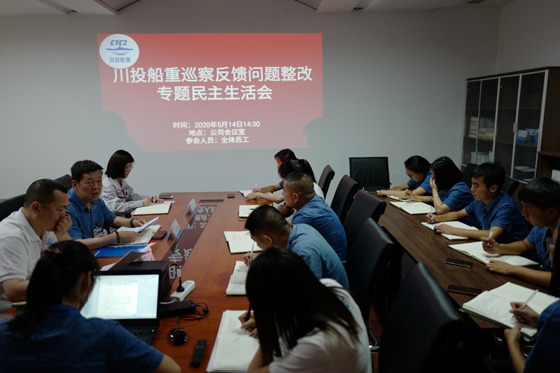 根據(jù)省國資委第二巡察組要求,按照川投水務(wù)集團(tuán)黨委《關(guān)于落實(shí)省國資委第二巡察組巡察反饋意見的整改方案》,四川川投船重環(huán)境科技有限公司于2020年5月14日召開巡察反饋問題整改專題民主生活會,會議由總經(jīng)理馬銘偉主持,全體員工參加會議。