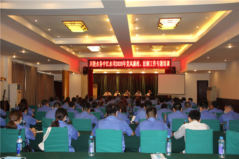 為進(jìn)一步加強(qiáng)中江水司黨風(fēng)廉政建設(shè)和法制工作,按照川投集團(tuán)和川投水務(wù)集團(tuán)工作部署,2020年7月15日下午,中江水司組織召開了2020年黨風(fēng)廉政、法制工作專題培訓(xùn)會。此次培訓(xùn)會邀請了德陽市政法委副書記、德陽市法學(xué)會常務(wù)副會長程正春、四川仁競律師事務(wù)所主任吳明全為大家專題授課。中江縣政法委副書記冉輝、德陽市法學(xué)會秘書科科長曹茗菁陪同出席。公司全體員工、法律顧問共計(jì)91人參加培訓(xùn)。會議由黨支部書記、董事長、總經(jīng)理朱禹主持。