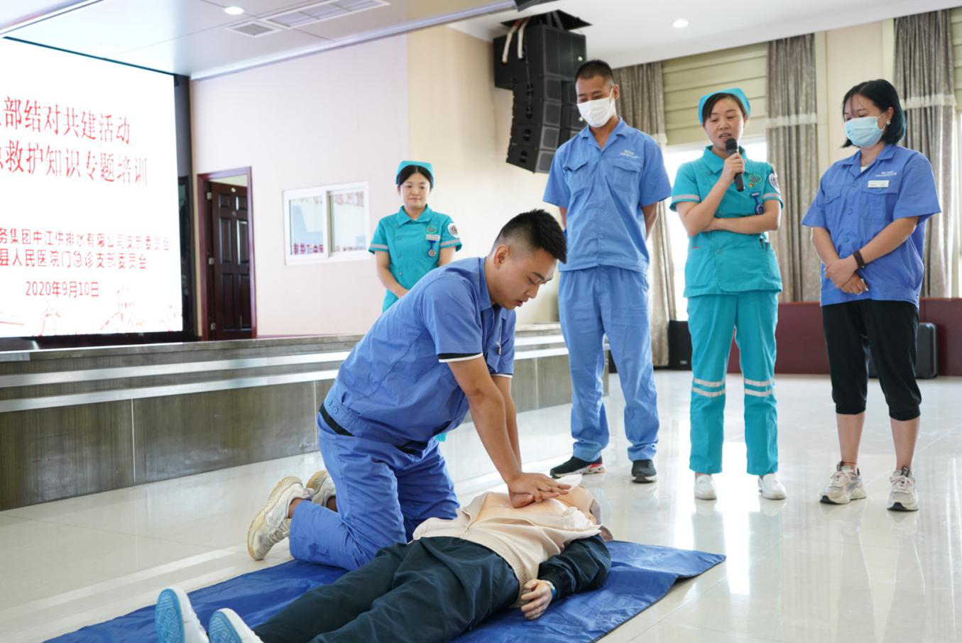為深入貫徹落實(shí)川投集團(tuán)黨委“雙爭雙創(chuàng)”和川投水務(wù)集團(tuán)黨委“雙爭雙創(chuàng)雙促”活動要求,以及貫徹執(zhí)行“安全第一,預(yù)防為主”的安全指導(dǎo)方針,通過急救知識培訓(xùn),提高職工應(yīng)急救護(hù)能力。9月10日,中江水司黨支部與中江縣人民醫(yī)院門急診支部委員會開展結(jié)對共建活動,聯(lián)手為中江水司100余名員工進(jìn)行了應(yīng)急救護(hù)專題培訓(xùn)。本次活動由中江水司常務(wù)副總經(jīng)理秦榮主持。