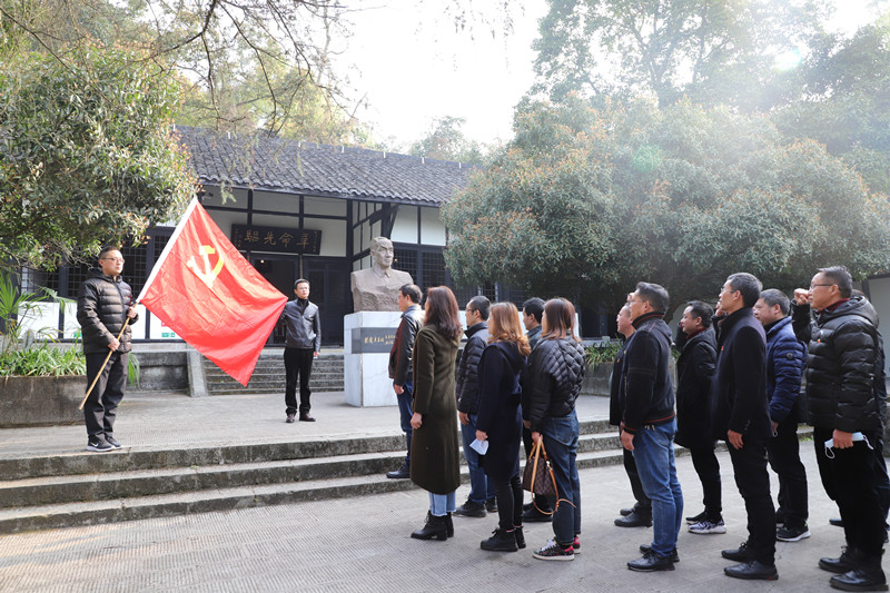隨后,在吳玉章紀(jì)念碑前,全體黨員面對黨旗重溫入黨誓詞:“我志愿加入中國共產(chǎn)黨,擁護(hù)黨的綱領(lǐng)……”以錚錚誓言再次做出共產(chǎn)黨員的鄭重承諾。