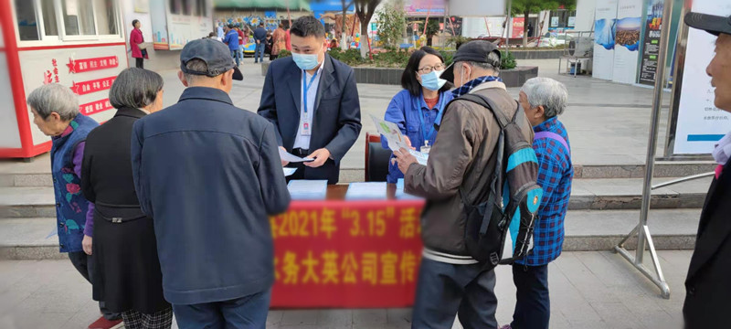 2021年3月15日上午,為進(jìn)一步貫徹《中華人民共和國消費(fèi)者權(quán)益保護(hù)法》和《四川省消費(fèi)者權(quán)益保護(hù)條例》,提高消費(fèi)者的滿意度,大英水司在新城區(qū)政府廣場和老城區(qū)朝陽廣場開展消費(fèi)者權(quán)益日宣傳活動(dòng)。