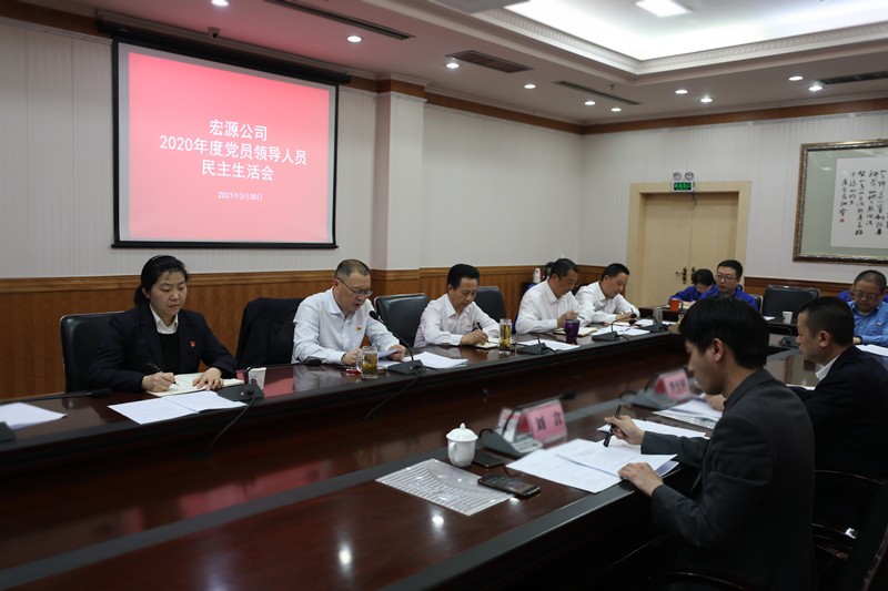 2021年3月30日,宏源公司2020年度黨員領導人員民主生活會在宏源公司11樓會議室召開。川投水務集團黨群工作部副部長李至彬、黨群工作部劉言及公司班子成員出席會議。公司黨委委員、黨委辦、紀委辦和相關宣講人員列席會議。會議由川投水務集團黨委委員、宏源公司黨委書記、總經理李旭東主持。