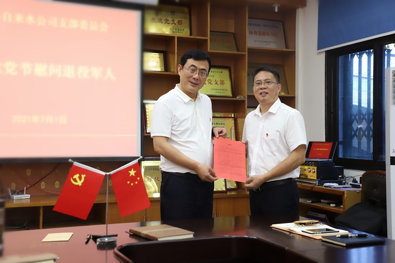 隨后,公司組織開展了黨支部書記講黨課活動(dòng),由榮縣水司支部書記、執(zhí)行董事、總經(jīng)理龔慶主持親自授課,黨課的主題為“感黨恩 聽黨話 跟黨走”及“辦實(shí)事 開新局”。龔慶對(duì)習(xí)總書記在慶祝大會(huì)上的講話進(jìn)行了再次傳達(dá)學(xué)習(xí),并肯定了全體黨員及退役軍人整體形象好、講政治、有覺悟,在各自的崗位起到了先鋒模范作用,不負(fù)黨員和退役軍人的光榮稱號(hào),對(duì)公司發(fā)展做出了積極貢獻(xiàn)。龔慶同時(shí)提出三點(diǎn)要求:一是黨員和退役軍人要居安思危,增強(qiáng)憂患意識(shí),常懷憂黨之心,恪盡興黨之責(zé),以忠誠(chéng)于黨和人民的事業(yè)為天職,自覺地?fù)?dān)當(dāng)起實(shí)現(xiàn)國(guó)家富強(qiáng)和人民幸福的歷史使命。二是要提高政治站位、堅(jiān)定理想信念,做到旗幟鮮明講政治,堅(jiān)持學(xué)習(xí)、追求進(jìn)步,用黨的科學(xué)理論武裝頭腦,時(shí)刻保持干事創(chuàng)業(yè)的強(qiáng)大動(dòng)力。三是要堅(jiān)持中國(guó)共產(chǎn)黨為人民服務(wù)的宗旨,供水關(guān)乎民生,連接千家萬(wàn)戶,作為黨員和退役軍人,要恪盡職守、沖鋒在前,不斷提升服務(wù)質(zhì)量,做好安全穩(wěn)定供水工作。