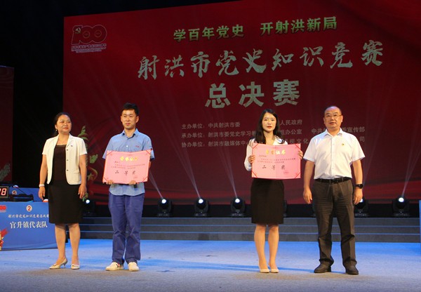 2021年7月16日下午2:30分,由中共射洪市委、射洪市人民政府主辦,市委黨史學(xué)習(xí)教育領(lǐng)導(dǎo)小組辦公室、中共射洪市委宣傳部承辦的射洪市“學(xué)黨史·跟黨走”黨史知識競賽總決賽在市文化藝術(shù)中心舉行,射洪市各鎮(zhèn)、街道、市直各部門代表參加并觀看了比賽。
