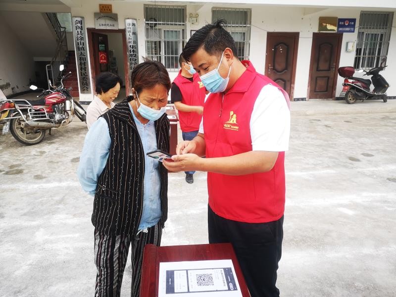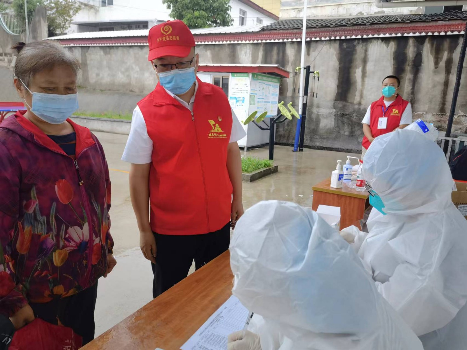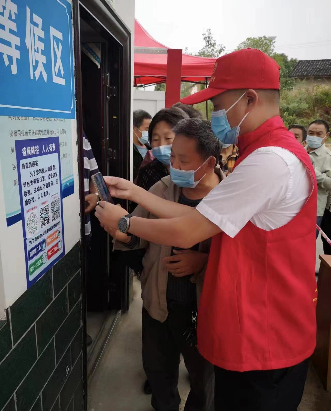 隨著人流量不斷增加,隊員們又主動承擔起維持秩序、引導(dǎo)掃碼測溫等工作。“請您帶好口罩,出示行程碼,掃場所碼!”由于農(nóng)村地區(qū)老年人居多,對核酸檢測程序不了解,隊員們不厭其煩地一遍又一遍地重復(fù)著引導(dǎo)語。有的老年人沒有智能手機或者不會使用,他們又主動幫助其核實身份信息、綁定“天府健康通”APP等等,讓采樣過程更加流暢,效率大大提高。經(jīng)過一天的努力,涂山鎮(zhèn)全域全員核酸采樣完成,無一人漏檢。