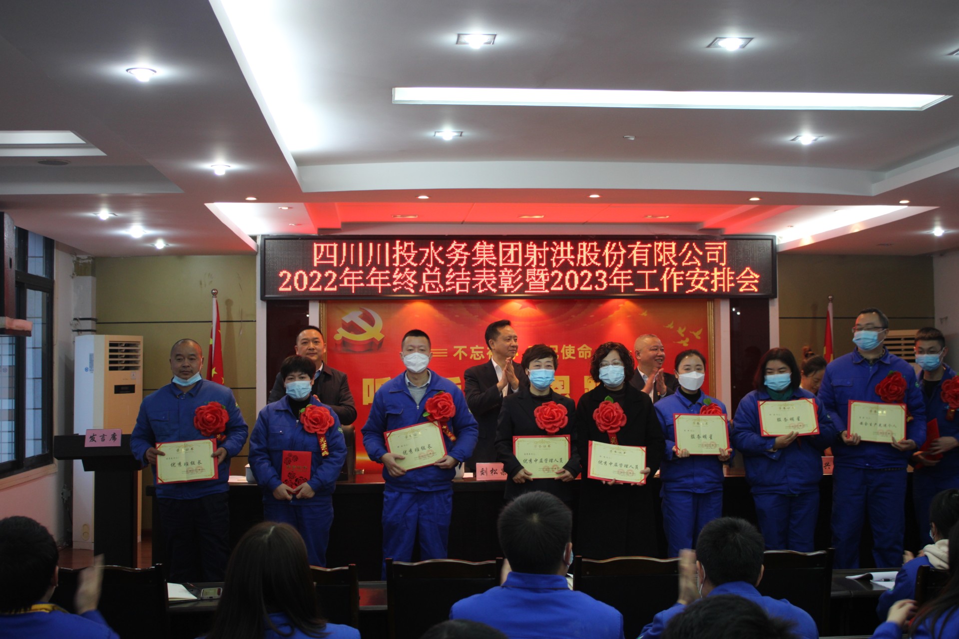 1月12日上午,射洪水司召開(kāi)了2022年度總結(jié)暨表彰暨2023年工作安排大會(huì),會(huì)議由公司黨支部青年委員、副總經(jīng)理?xiàng)钛訌?qiáng)主持。公司領(lǐng)導(dǎo)班子、中層管理人員、員工代表和受表彰的干部職工共計(jì)60余人參加了會(huì)議。