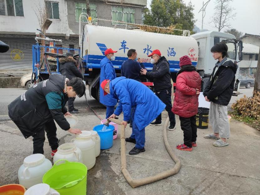 經(jīng)過多方溝通,1月5日上午,在縣住建局的協(xié)調(diào)下,公司借用園林所灑水車正式從下寺向普安送水?!按蠹铱斐鰜斫铀?!”當(dāng)聽到工作人員的呼聲后,居民們紛紛從家里出來接水,有的拎著水桶,有的拖著水管,有的扛著抽水泵.....看見漸漸灌滿的蓄水池和水桶,居民們臉上洋溢著滿意的笑容,大家紛紛說到:“感謝川投水務(wù)為我們送來飲用水,這是實(shí)實(shí)在在替我們老百姓辦實(shí)事?。 ?
