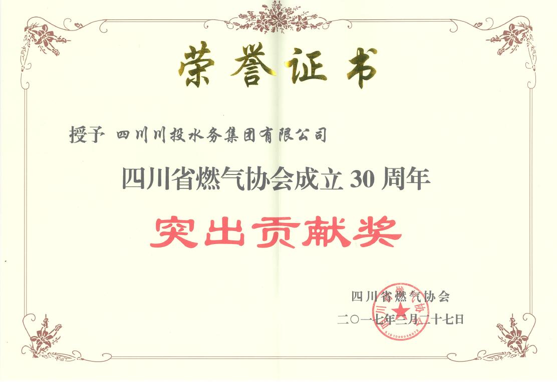 四川省燃?xì)鈪f(xié)會成立30周年突出貢獻(xiàn)獎