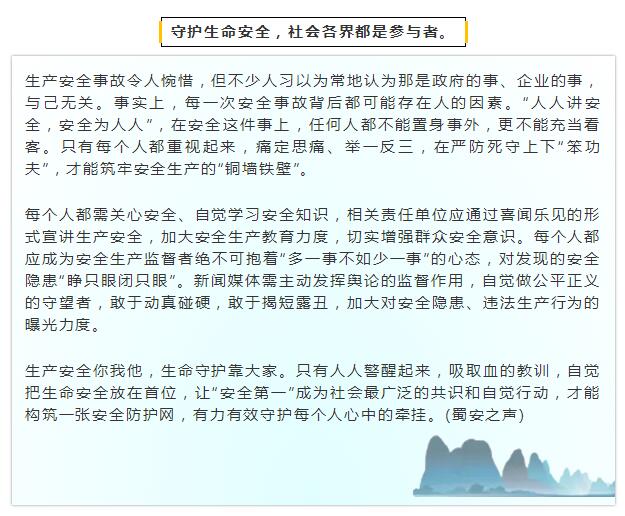 • 踐行安全生產(chǎn),守護(hù)每個人心中的牽掛(來源:四川省應(yīng)急管理廳)