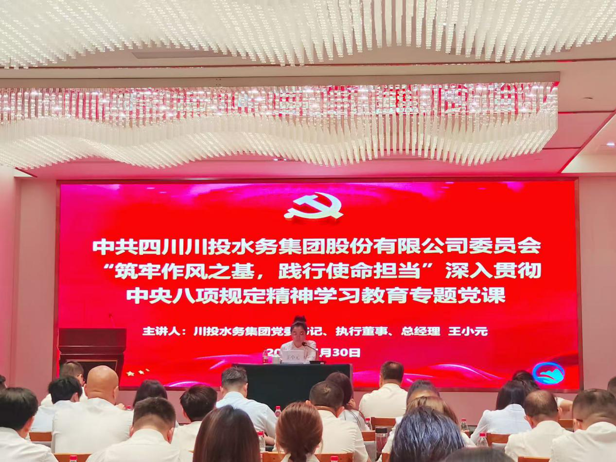 6月30日,在中國共產(chǎn)黨104周年華誕來臨之際,四川川投水務(wù)集團(tuán)召開了深入學(xué)習(xí)中央八項規(guī)定精神專題黨課暨“七一”表彰大會。集團(tuán)黨委書記、執(zhí)行董事、總經(jīng)理王小元作專題授課,黨委委員、副總經(jīng)理徐子銳主持會議。