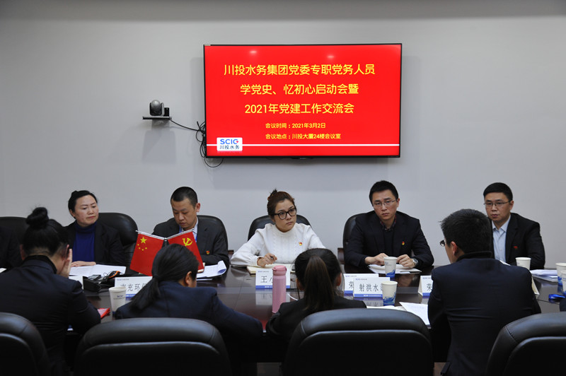 2021年3月2日,川投水務(wù)黨委召開“學(xué)黨史、憶初心、提能力”啟動(dòng)會(huì)暨2021年黨建工作交流會(huì)。川投水務(wù)黨委副書記、工會(huì)主席王小元主持會(huì)議,黨群工作部、機(jī)關(guān)黨支部、各所屬公司黨委(支部)專職黨務(wù)人員參加會(huì)議。