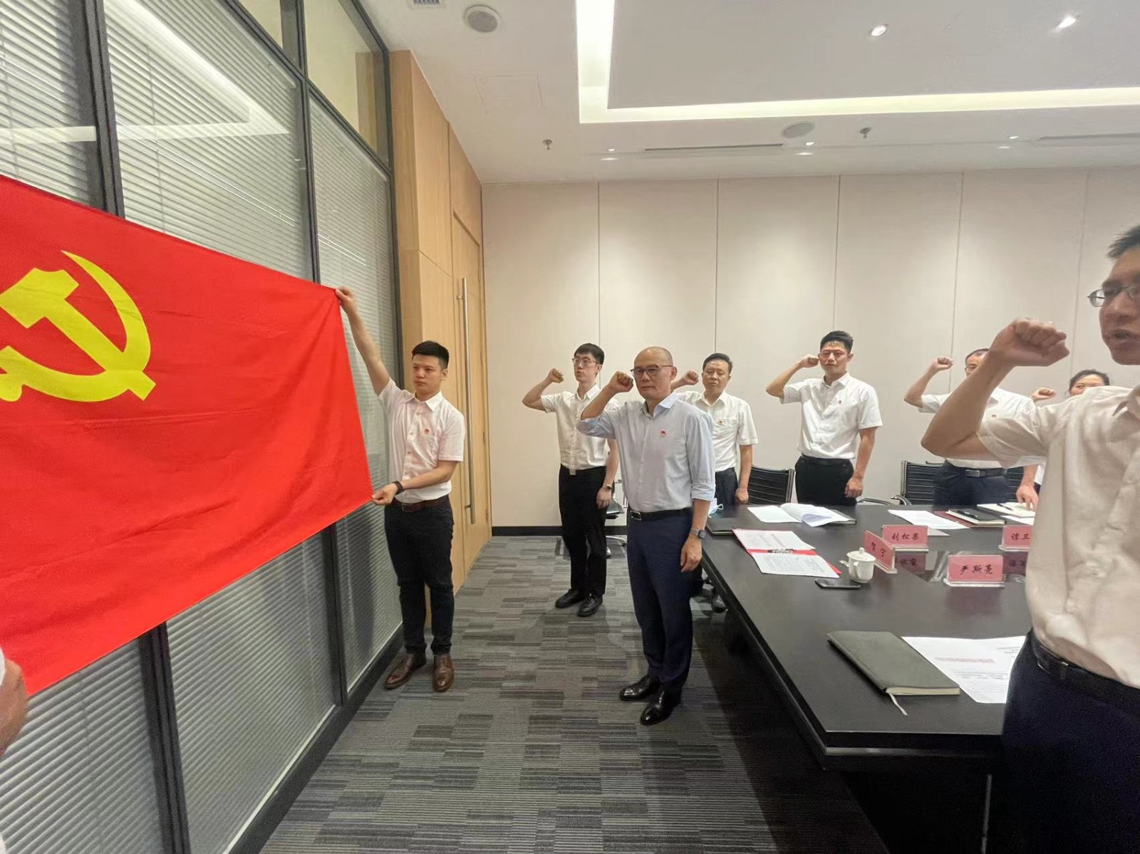 大會(huì)在莊嚴(yán)的國歌聲中開幕,黨委書記賀寧同志帶領(lǐng)全體預(yù)備黨員同志們,面向黨旗莊嚴(yán)宣誓,入黨誓詞句句鏗鏘、聲聲振耳、激蕩人心,我們將“不忘初心,牢記使命”為黨的事業(yè)接續(xù)奮斗鑄就更加輝煌的明天!同時(shí),正式黨員同志們也再次重溫了入黨誓詞。