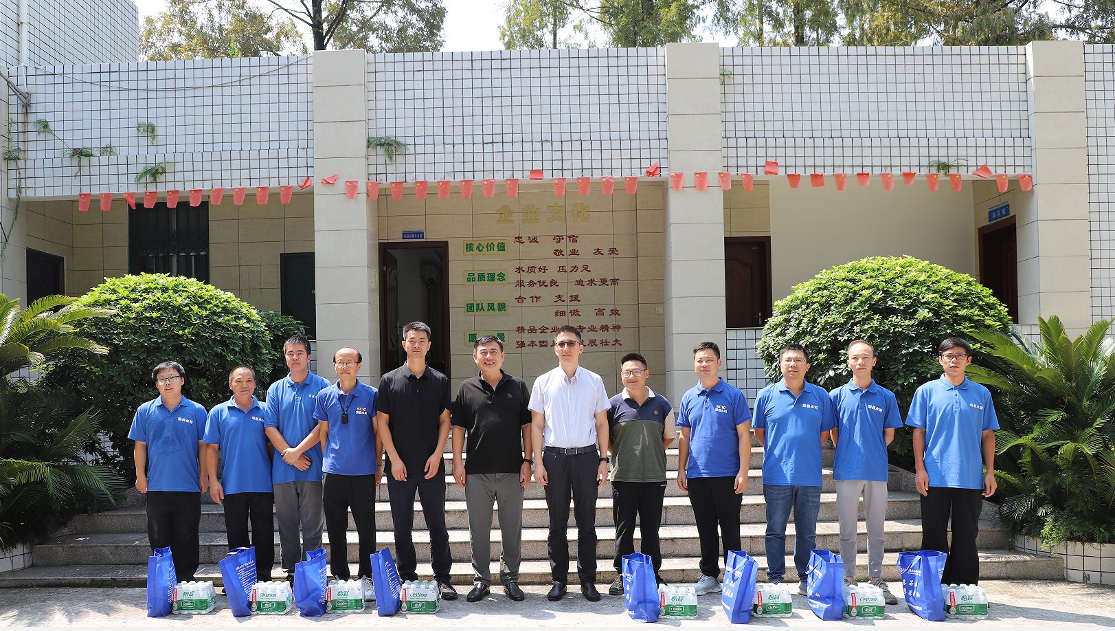 夏日炎炎,驕陽(yáng)似火,8月21日,川投水務(wù)集團(tuán)黨委委員、副總經(jīng)理嚴(yán)斯亮一行頂著烈日、冒著高溫,赴榮縣水司開展夏季送清涼活動(dòng)。