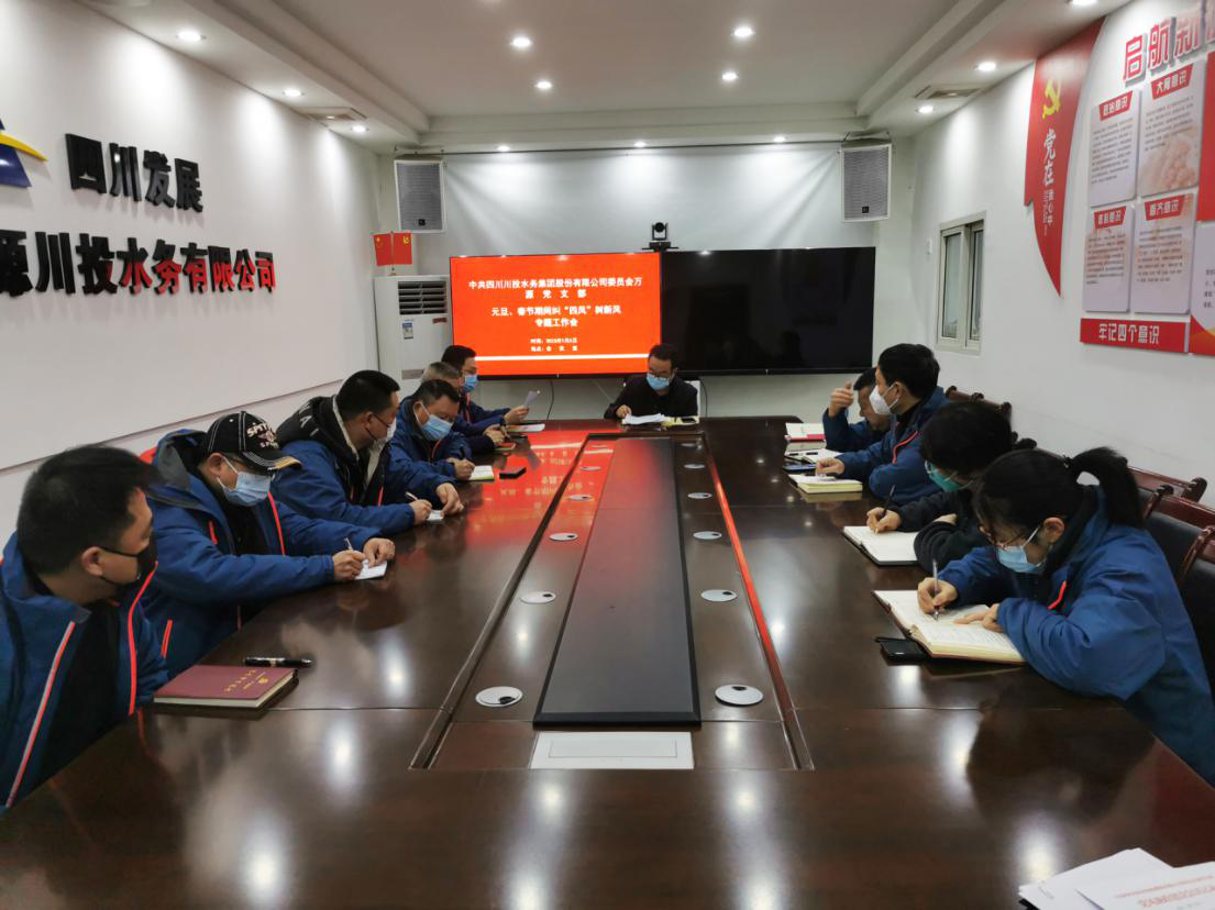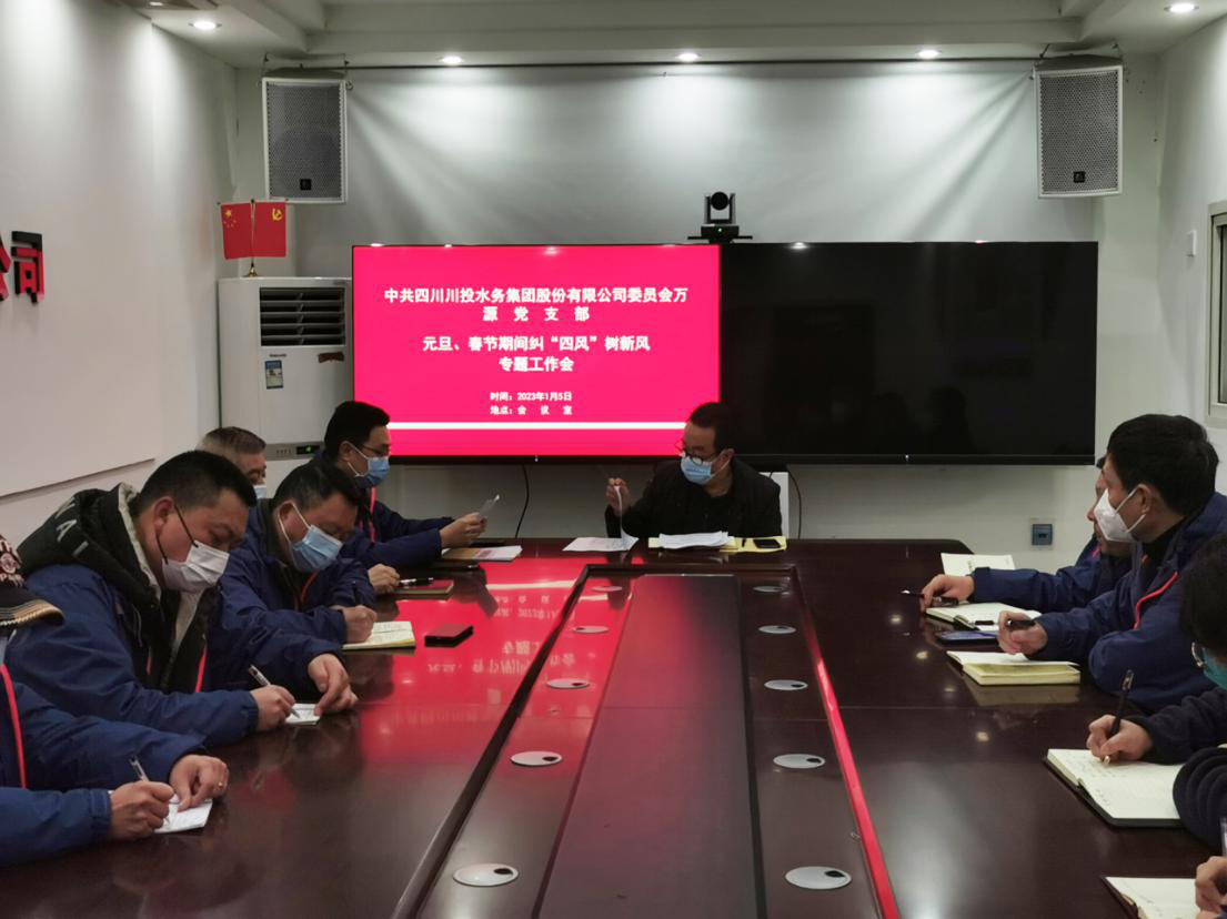 2023年春節(jié)將至,為馳而不息的做好防治節(jié)日“四風(fēng)”問題,營造“風(fēng)清氣正”的節(jié)日氛圍,按照川投水務(wù)集團(tuán)黨委、紀(jì)委的工作要求,萬源公司黨支部于1月5日上午組織召開了元旦、春節(jié)期間糾“四風(fēng)”樹新風(fēng)專題工作會。公司領(lǐng)導(dǎo)班子成員、部門副職及以上管理人員參加會議。