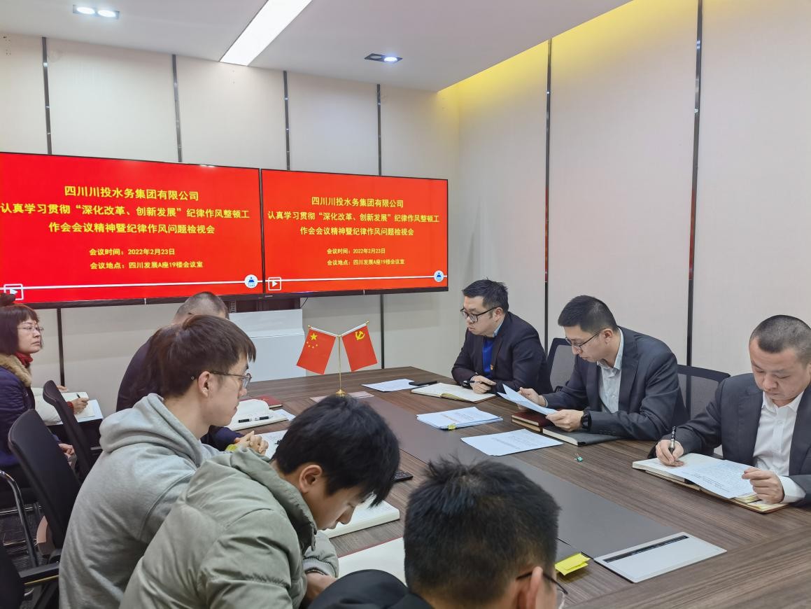 2022年2月23日,為全面貫徹落實四川發(fā)展黨委《關(guān)于開展“深化改革、創(chuàng)新發(fā)展”紀律作風整頓工作的通知》文件精神,進一步增強隊伍凝聚力和戰(zhàn)斗力,優(yōu)化發(fā)展環(huán)境,切實助推企業(yè)實現(xiàn)高質(zhì)量發(fā)展,川投水務(wù)集團認真組織召開“深化改革、創(chuàng)新發(fā)展”紀律作風整頓工作會暨本部紀律作風問題檢視會,會議由川投水務(wù)集團黨委委員、副總經(jīng)理嚴斯亮主持。
