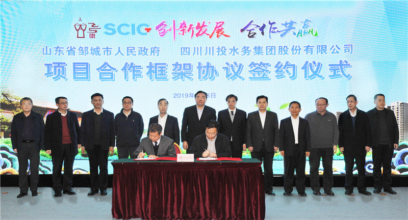 2019年1月8日,川投水務(wù)集團(tuán)與山東鄒城市政府在鄒城市舉行項目合作框架協(xié)議簽約儀式。四川省國資委黨委書記、主任徐進(jìn),川投集團(tuán)黨委副書記、副董事長、總經(jīng)理劉體斌,董事、副總經(jīng)理李洪,川投水務(wù)集團(tuán)黨委書記、董事長梁有國,山東省管企業(yè)監(jiān)事會主席楊少軍,濟(jì)寧市委常委、鄒城市委書記張百順,濟(jì)寧市國資委副書記、副主任岳修廣等領(lǐng)導(dǎo)出席簽約儀式。鄒城市委副書記、市長杜慶節(jié)主持簽約儀式。