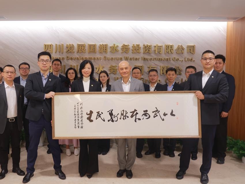 11月9日,四川省生態(tài)環(huán)保集團黨委書記、董事長許娟,川投水務集團黨委書記、執(zhí)行董事、總經(jīng)理賀寧在四川發(fā)展大廈17樓看望慰問了川投水務集團全體員工,并向川投水務集團贈送了“以民為本、服務民生”牌匾。