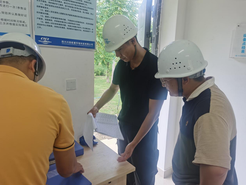 會后,檢查組一行現(xiàn)場查看了公司污水廠主要工藝流程及處理設施運行情況,對廠區(qū)段安寧河道一側的擋墻,廠區(qū)排洪溝和雨水管道進行了實地查勘。次日上午,檢查組再次對安全生產相關資料臺賬、安全檢查記錄、化學藥品出入庫和登記使用等進行了現(xiàn)場查驗。