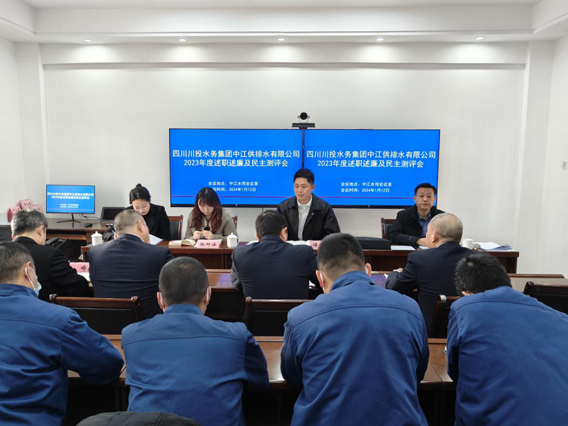 2024年1月12日,川投水務(wù)集團(tuán)副總經(jīng)理譚衛(wèi)鵬率黨群工作部部長李至彬一行赴中江公司開展2023年度黨群、紀(jì)檢、人力資源、合規(guī)化管理綜合考評,并召開述職述廉及民主測評會。中江公司領(lǐng)導(dǎo)班子、中層管理人員及職工代表共計(jì)32人參加考評會議。