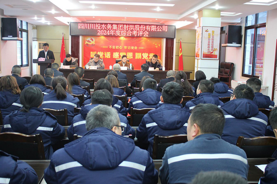 2024年12月26日,川投水務(wù)黨委成員、副總經(jīng)理唐韜一行4人赴射洪公司開展2024年綜合考評(píng)工作,射洪公司領(lǐng)導(dǎo)班子、中層干部及員工代表共計(jì)50余人參加會(huì)議。