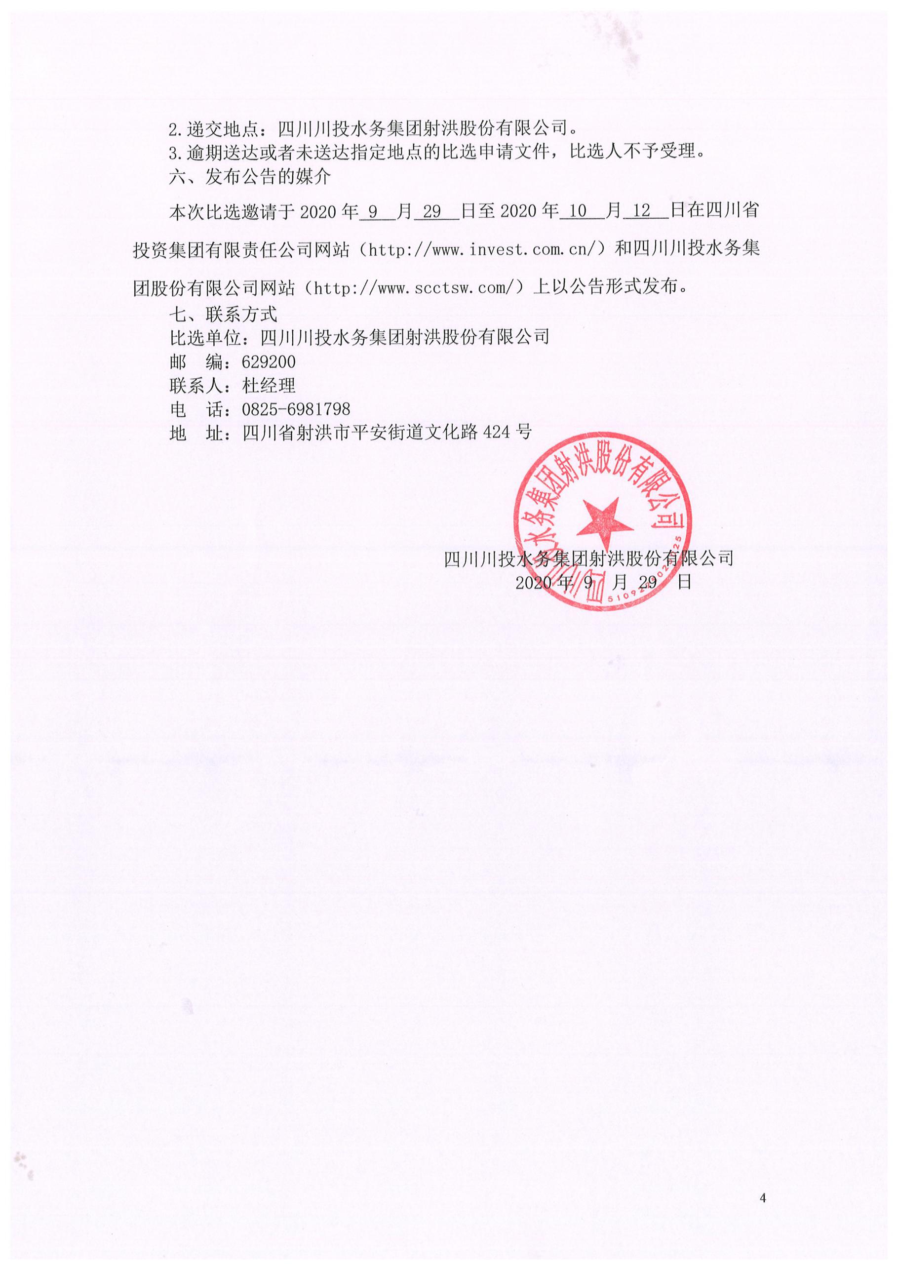 上一條:四川川投水務(wù)集團股份有限公司射洪新建自來水廠可行性研究報告編制項目比選公告